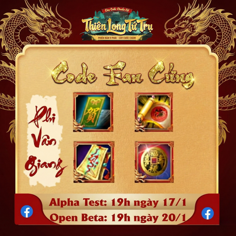 Khi đạt fan cứng chụp ảnh gửi Page để nhận Code . _______________________________________________________________ Thiên Long Tứ Trụ – Hồn Xưa Máy Chủ Phi Vân Giang. Open Chính Thức : 19h00, ngày 20/1/2026. Thiên Long Tứ Trụ Chuẩn Cày Cuốc Trang chủ: https://www.thienlongtutru.net Nhóm Zalo: https://zalo.me/g/rujvzn519 Group Fanpage : https://www.facebook.com/share/g/1H417RC5F5/ Fanpage : https://www.facebook.com/thienlongtutru/